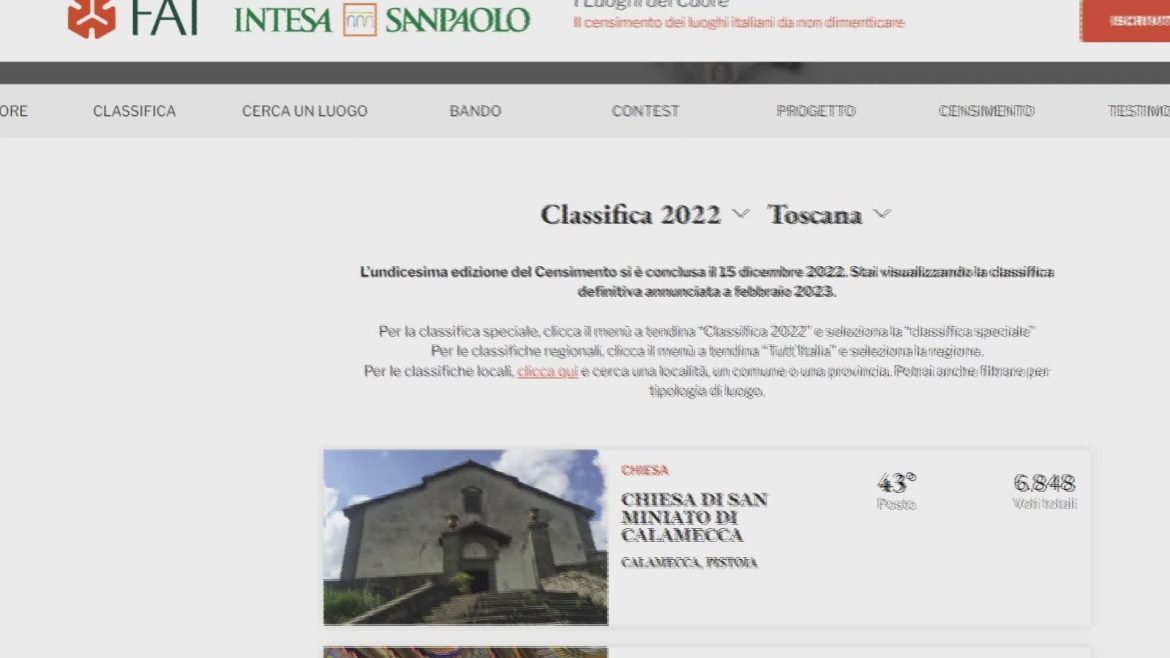 I voti raccolti dall'edificio religioso della Val di Forfora, nel comune di San Marcello Piteglio, hanno consentito di metterlo in testa alla classifica regionale e al 43mo assoluto a livello nazionale.