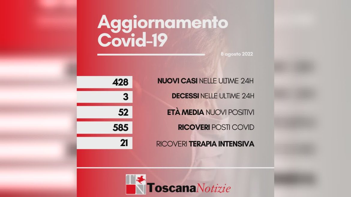 L'età media dei 428 nuovi positivi odierni è di 52 anni circa (10% ha meno di 20 anni, 16% tra 20 e 39 anni, 30% tra 40 e 59 anni, 32% tra 60 e 79 anni, 12% ha 80 anni o più).
