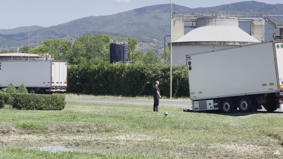 Un autotreno infatti ha perso il proprio rimorchio alla rotonda del DANO che separa la zona della Vergine da via Toscana.