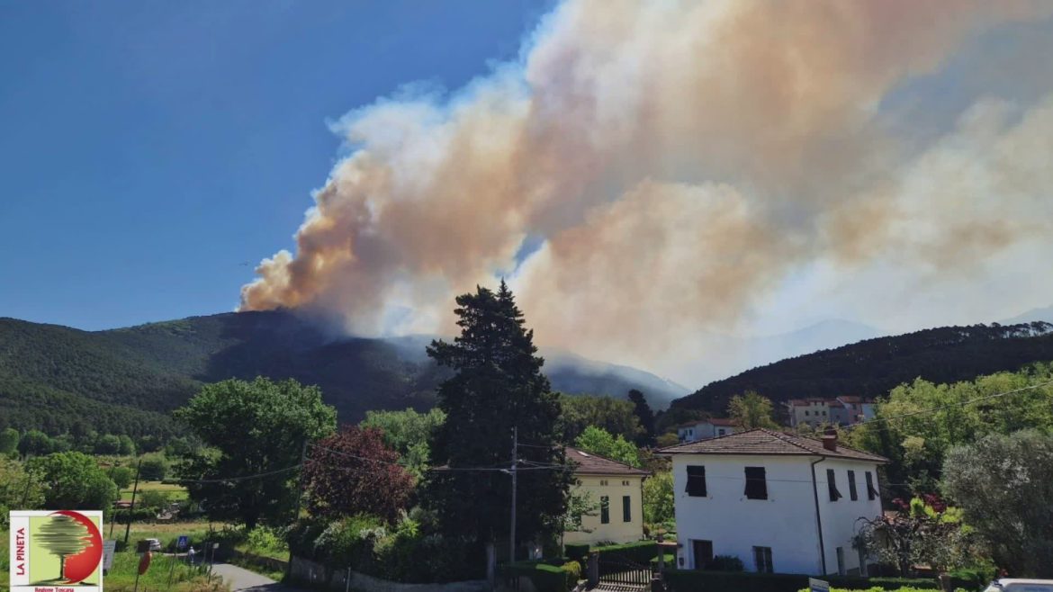 Purtroppo, anche a causa del forte vento di grecale, è ancora attivo l’incendio di vaste dimensioni che sta interessando i monti al confine tra le province di Pisa e Lucca.