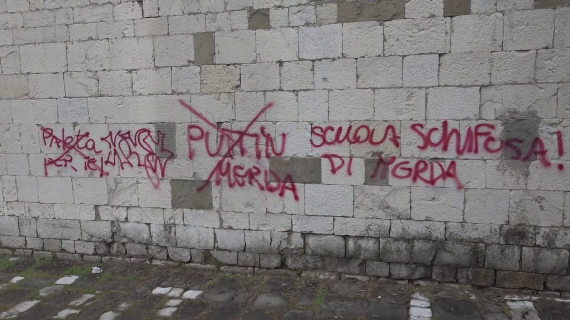 In particolare sono state realizzate delle scritte con bomboletta spray sul lato dell’edificio che guarda verso Corso Gramsci. Messaggi contro il presidente russo Vladimir Putin e contro la scuola, altre frasi dal significato incomprensibile. Il Monumento ad Aldo Moro invece è stato sfondato nella parte posteriore, dove si trova il sistema di funzionamento della fontana, e macchiato con della vernice di colore arancione. Sul posto presenti anche alcuni petardi esplosi nelle vicinanze. Ad ora sono ignoti gli autori del gesto su cui stanno lavorando le Forze dell’Ordine.