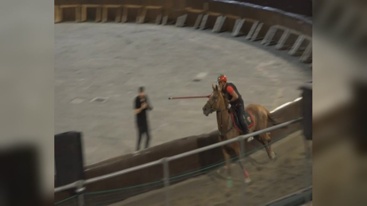 PISTOIA - Colpo di scena ieri sera in Piazza Duomo: durante le prove della Giostra dell’Orso è sceso in pista, a sorpresa, Gino Culatore, storico cavaliere del Rione del Drago. In sella alla fedele Duchessa, il veterano ha testato la pista tra l’entusiasmo generale, accolto da un lungo applauso bipartisan da parte del pubblico in piazza.