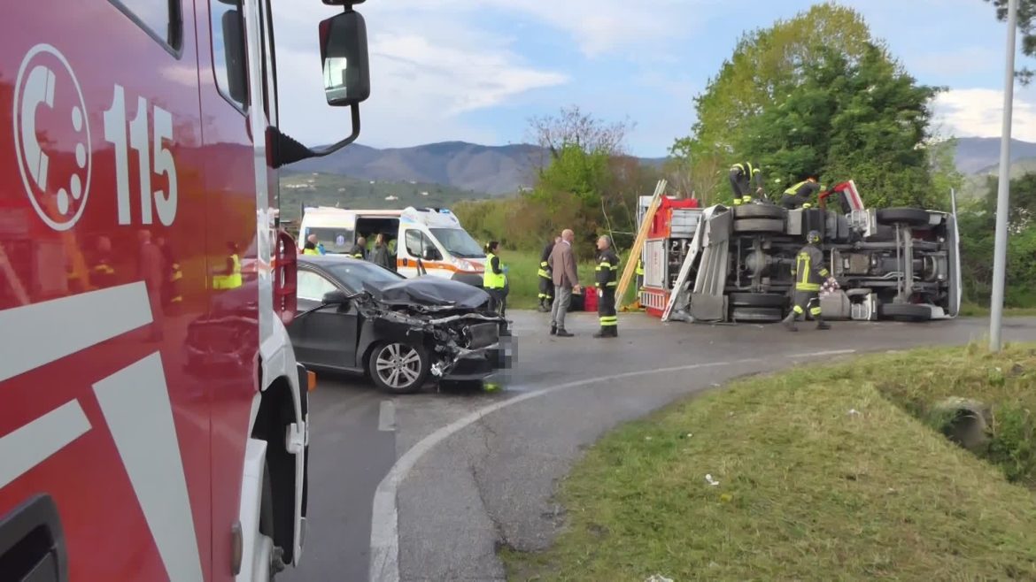 Sei risultano le persone rimaste ferite, cinque dei quali pompieri; a seguito dell'impatto l'autocarro dei Vigili del Fuoco, che era diretto verso un intervento, si è ribaltato su di un fianco, con uno degli occupanti che è stato estratto dai colleghi intervenuti per i soccorsi.