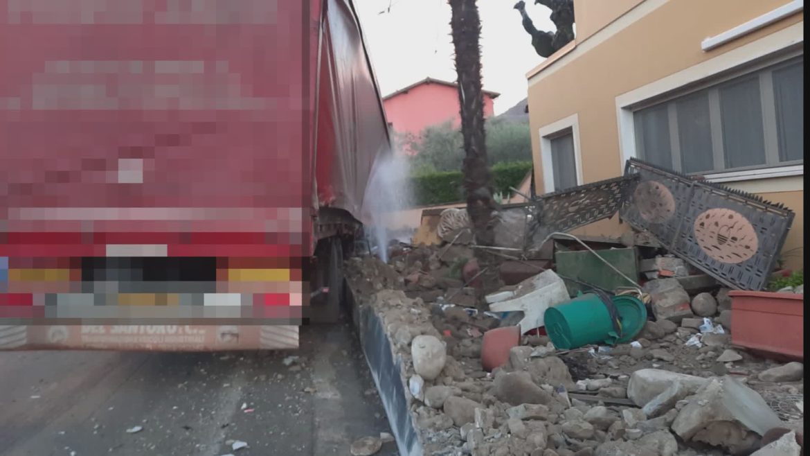 Qui, probabilmente per un guasto meccanico, a un bilico… diretto verso le cartiere di Villa Basilica… si è sganciato il carrello di rimorchio che è andato a schiantarsi contro il muretto di cinta di una abitazione distruggendolo.
