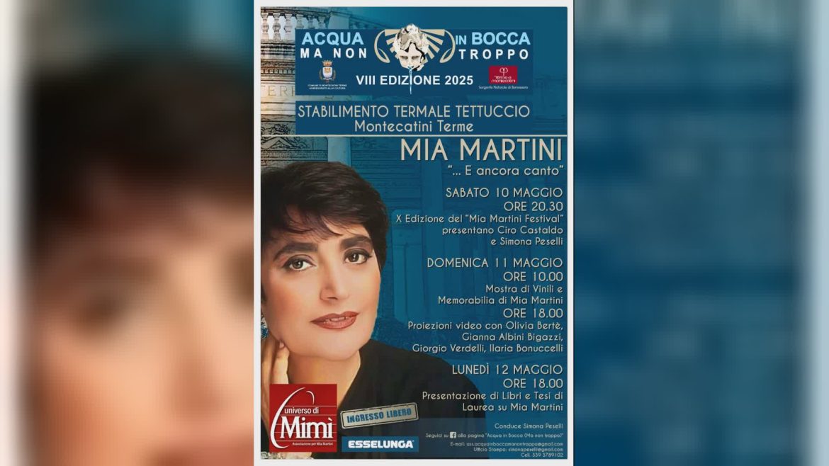 Il via, nell’ambito di “Acqua in Bocca ma non troppo” sarà sabato 10 alle ore 20.30 con il “Mia Martini Festival”; evento arrivato alla decima edizione e ospitato dalle Terme Tettuccio, presenta Ciro Castaldo; il giorno successivo dalle ore 10.00 si terrà una mostra di vinili e memorabilia dell’artista, con Olivia Bertè e Gianna Albini Bigazzi; lunedì 12 alle 18.00 ci sarà quindi la presentazione di libri e tesi di laurea su Mia Martini. La manifestazione, curata e condotta da Simona Peselli, sarà quindi prossimamente proposta su Tvl.