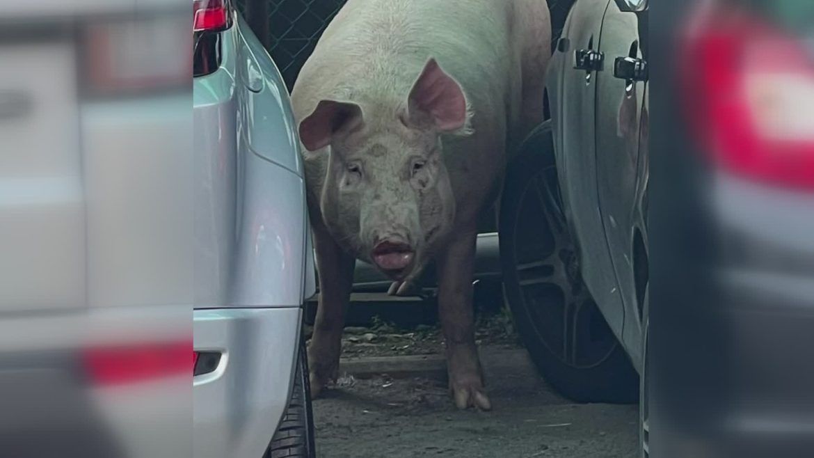 Questa mattina gli abitanti di via del Chiassetto a Cantagrillo, nel comune di Serravalle Pistoiese, usciti di casa hanno fatto un incontro a dir poco sorprendente: un grosso maiale, infatti, si stava aggirando tra le auto in sosta lungo la strada e nei giardini delle abitazioni.