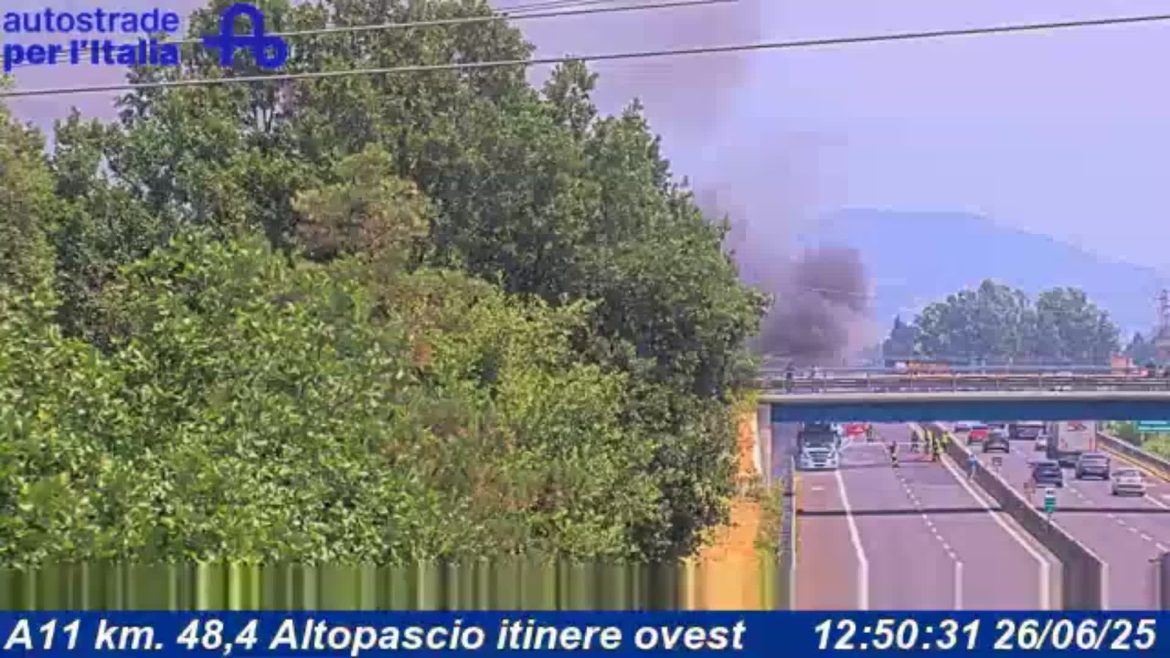 Caos nella tarda mattina di oggi sulla Autostrada A11 nel tratto fra Chiesina Uzzanese e Altopascio in direzione Mare a causa di un mezzo pesante finito in fiamme.